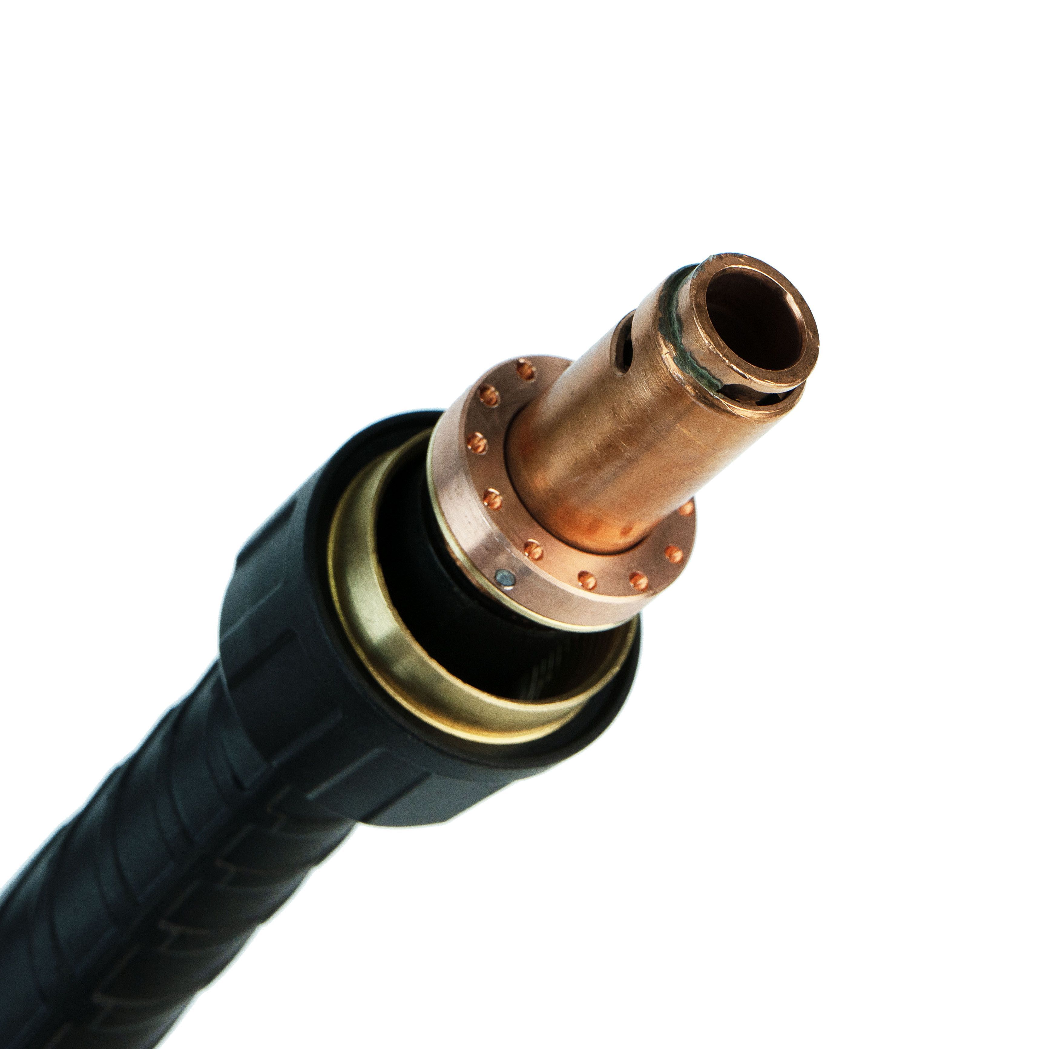 Гусак изогнут на 45°. Охлаждение внутри гусака доходит до основания сопла, что способствует увеличению срока службы всех расходных частей.