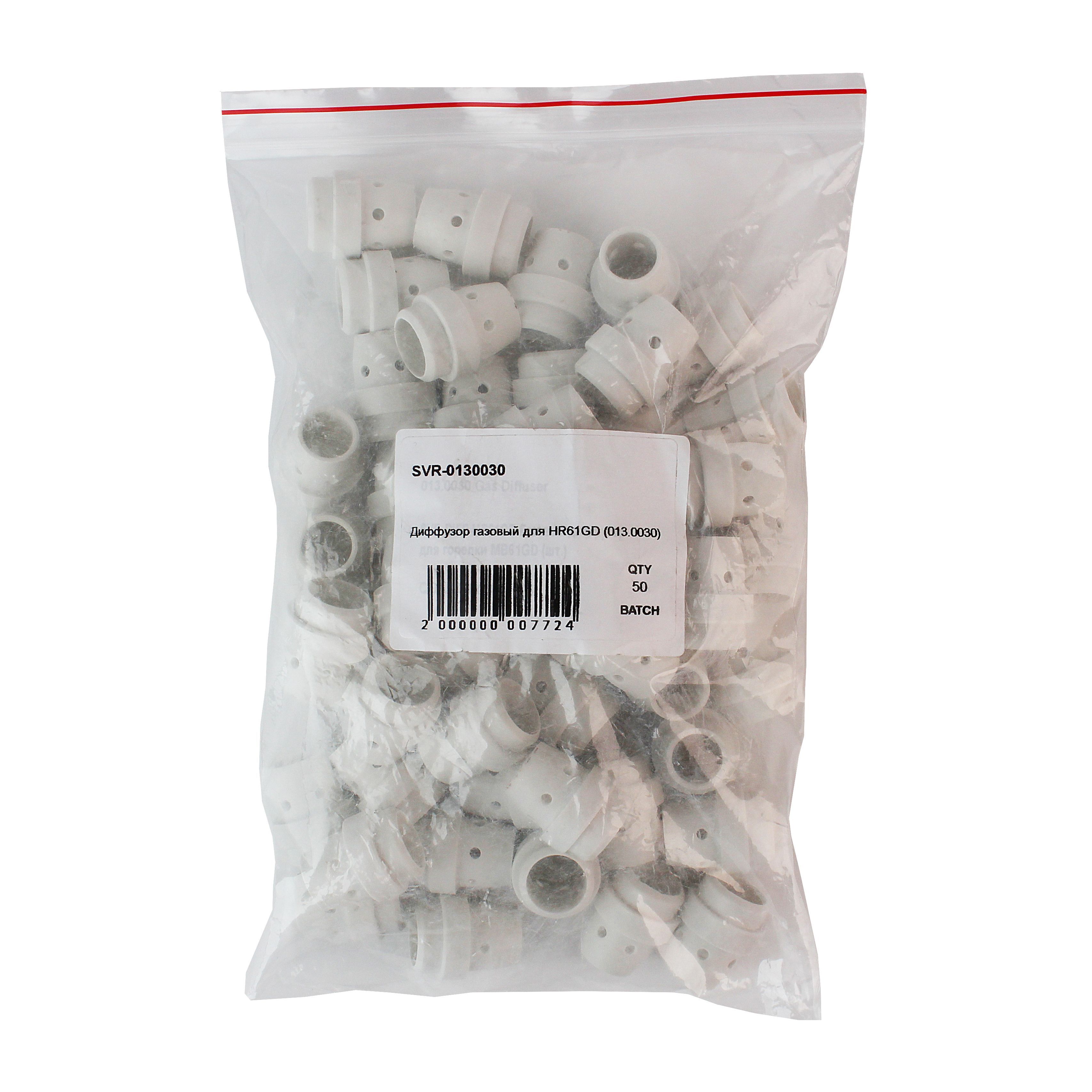 Диффузор газовый SVR-0130030 пластиковый предназначен для равномерного распределения потока защитного газа вокруг сварочной дуги и зоны сварки. Газораспределитель имеет длину 29,5 мм и выполнен из пластика. Подходит для полуавтоматической MIG/MAG горелки SVR 61GD и аналогичных.