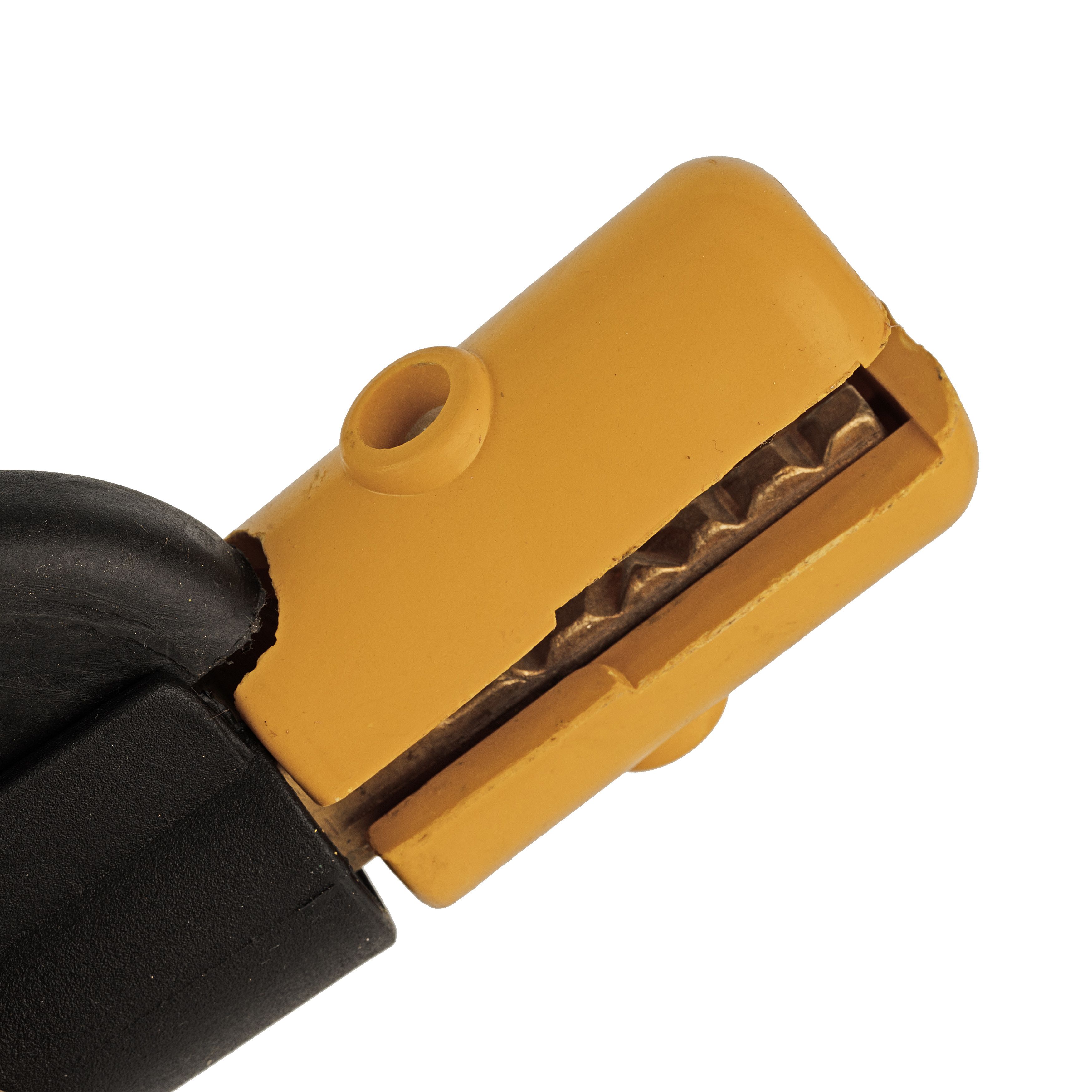 Относится к зажимному типу электрододержателей. Полностью латунные губки улучшают электропроводность и увеличивают срок службы, а также позволяют закрепить электрод в 4 разных положениях: под углом 45, 90, 135 или 180 градусов. Электрододержатель имеет изолированные наконечник и рукоятку.
