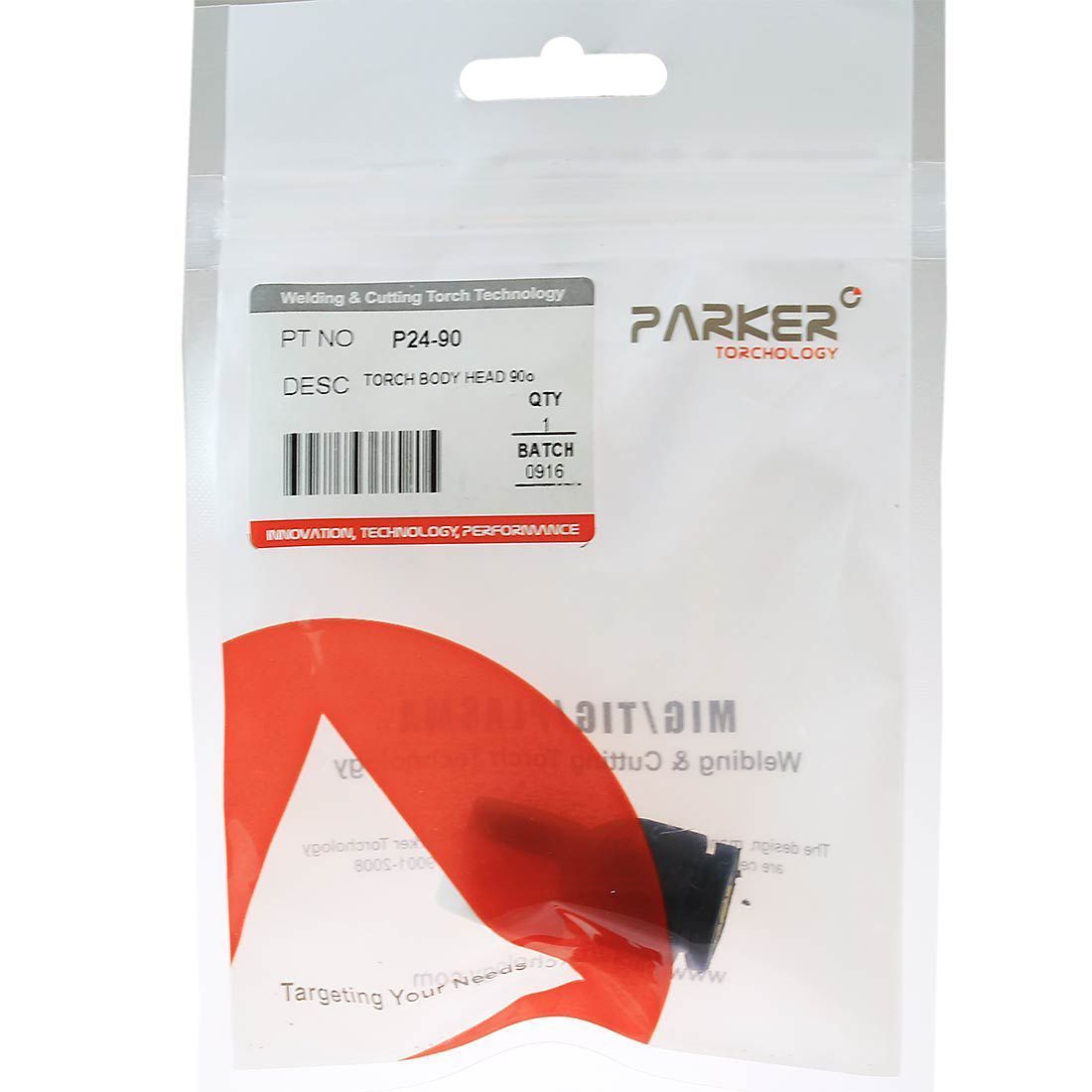 Голова горелки Parker P24-90 для аргонодуговых TIG горелок SGT 150F / 200F / 225F. Служит для подачи тока и защитного газа в зону сварки, а также для закрепления вольфрамового электрода. Голова покрыта силиконовым каучуком высокого качества, имеет угол наклона 90°, напряжение постоянного тока составляет 80A / 80A / 160A соответственно. Подходит к гусакам P150TB / P150VTB / P200TB / P200VTB / P225F. Благодаря маленьким размерам данная голова идеально подходит для сварки в труднодоступных местах.