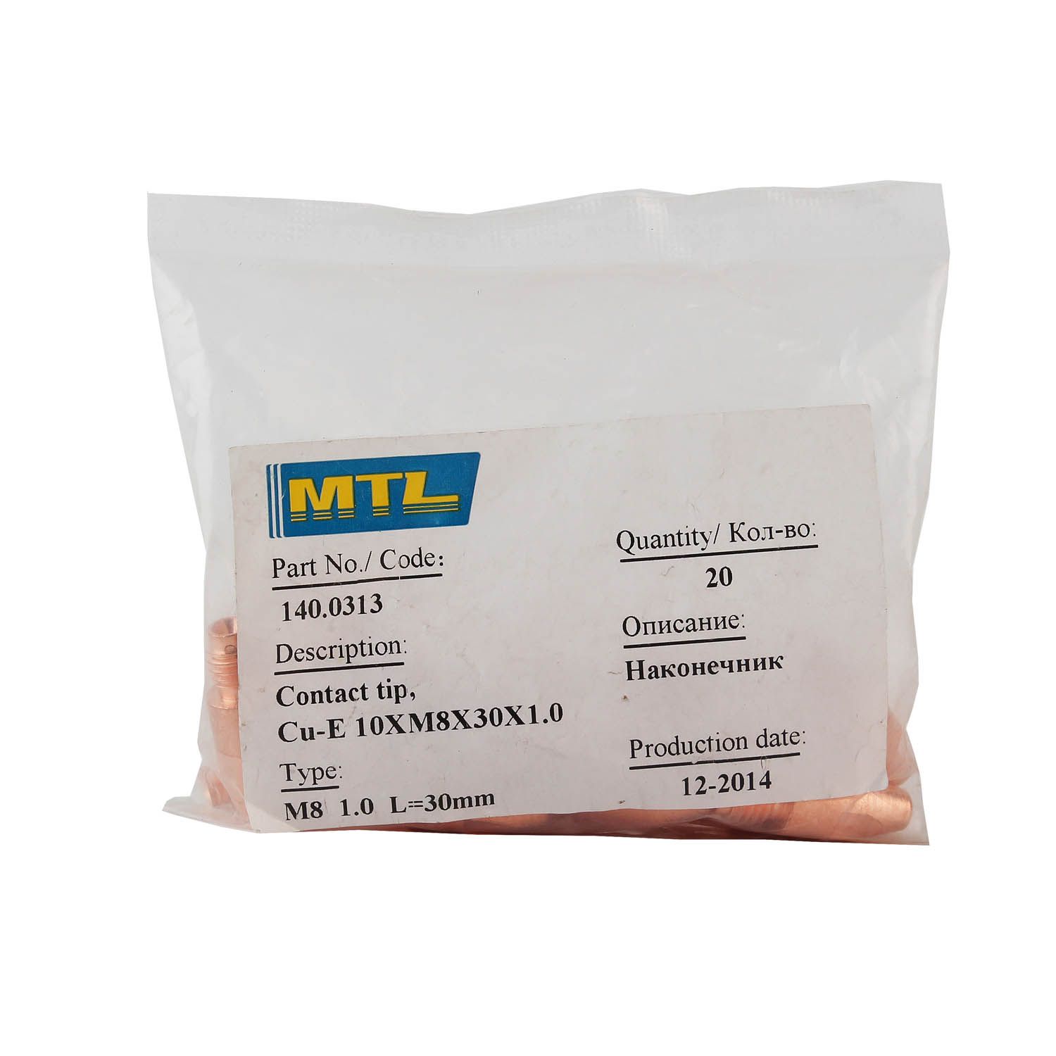 Сварочный наконечник длиной 30,0 мм имеет посадочную резьбу М8x1,25. Изготовлен из меди (ECu) и предназначен для подачи в зону сварки сплошной или порошковой проволоки диаметром 1,0 мм. Может использоваться для стальных углеродистых, низколегированных, нержавеющих, а также мягких видов проволок. Устанавливается во вставку под наконечник (держатель наконечника) с соответствующей резьбой. Является аналогом 140.0313, MD0005P10, ICU0005-10, 340P101262, 8015637.