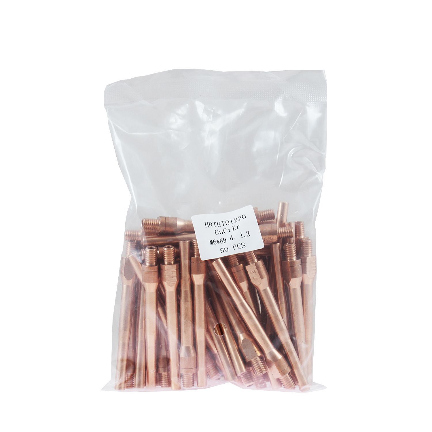 Сварочный наконечник длиной 69,0 мм имеет посадочную резьбу М6x1,0. Изготовлен из сплава CuCrZr и предназначен для подачи в зону сварки сплошной или порошковой проволоки диаметром 1,2 мм. Может использоваться для стальных углеродистых, низколегированных, нержавеющих, а также мягких видов проволок.