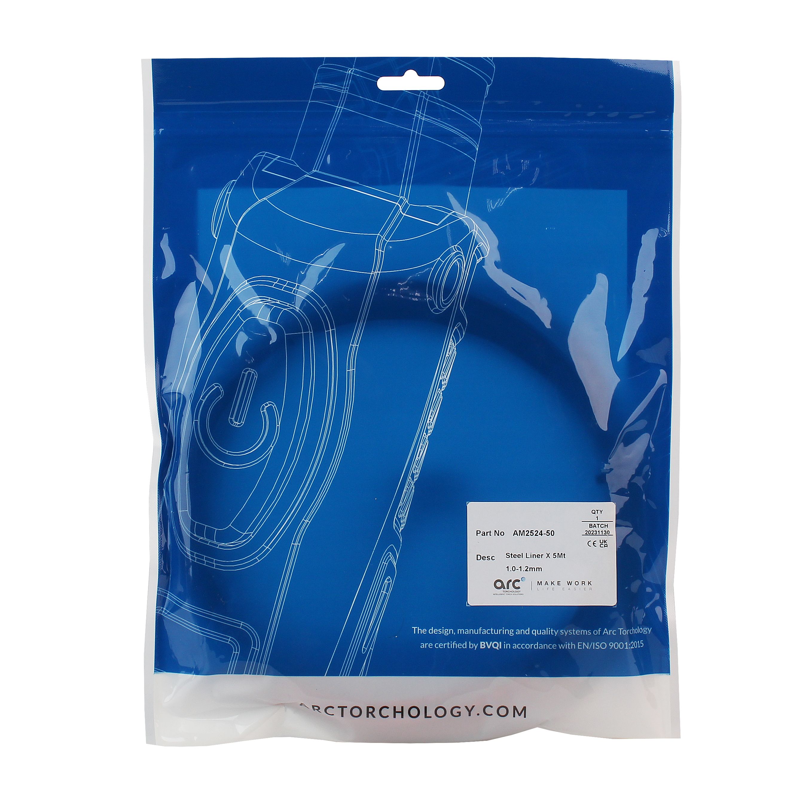 Направляющий канал Arc AM2524-50 предназначен для подачи углеродистой и низколегированной сварочной проволоки (проволочного электрода) диаметром 1,0-1,2 мм от подающего механизма полуавтомата в зону сварки. Направляющий канал состоит из стальной спирали длиной 5 метров, оплётки красного цвета и пластикового ниппеля. Также на ниппеле канала предусмотрены дополнительные уплотнительные кольца во избежание потерь защитного газа. Подходит для полуавтоматических MIG/MAG горелок Arc M1 / M18 / M2 / M22 / M2M / M22M / M3 / M4 / M4W.