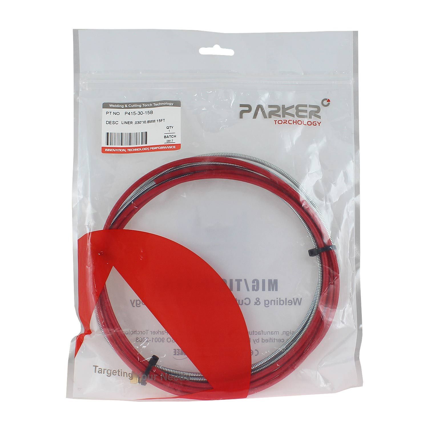 Направляющий канал Parker P415-30-15B предназначен для подачи углеродистой и низколегированной сварочной проволоки (проволочного электрода) диаметром 0,8 мм от подающего механизма полуавтомата в зону сварки. Направляющий канал состоит из стальной спирали длиной 4,9 метра, оплётки красного цвета и латунного ниппеля. Подходит для полуавтоматических MIG/MAG горелок с воздушным охлаждением серии TR (аналог Tregaskiss) TR 200A / 300A.