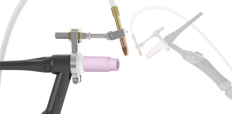 Все расходные части произведены по чертежам на высококачественном оборудовании, что гарантирует надёжность, долговечность и превосходный результат. Каждая деталь продумана для удобства работы во всех пространственных положениях. В стандартной комплектации горелка оснащена модулем управления с 1 кнопкой моментального переключения и силовым разъёмом SurelokTM 35-50 (типа Dinse).