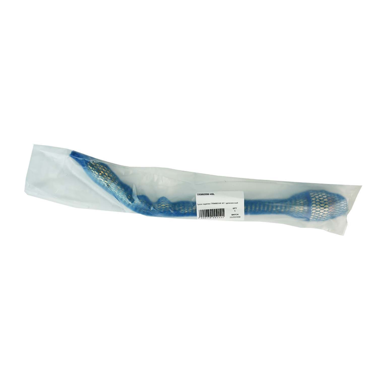Гусак TRM TRM605W-45L удлинённый для роботизированной горелки с жидкостным охлаждением TRM605W. Служит для подачи в зону сварки защитного газа, сварочной проволоки и тока. На гусаке закрепляются все расходные части: сопло, вставка под наконечник и контактный наконечник. Гусак изогнут на 45° для обеспечения лёгкого прохождения проволоки (например, мягкой или большого диаметра).