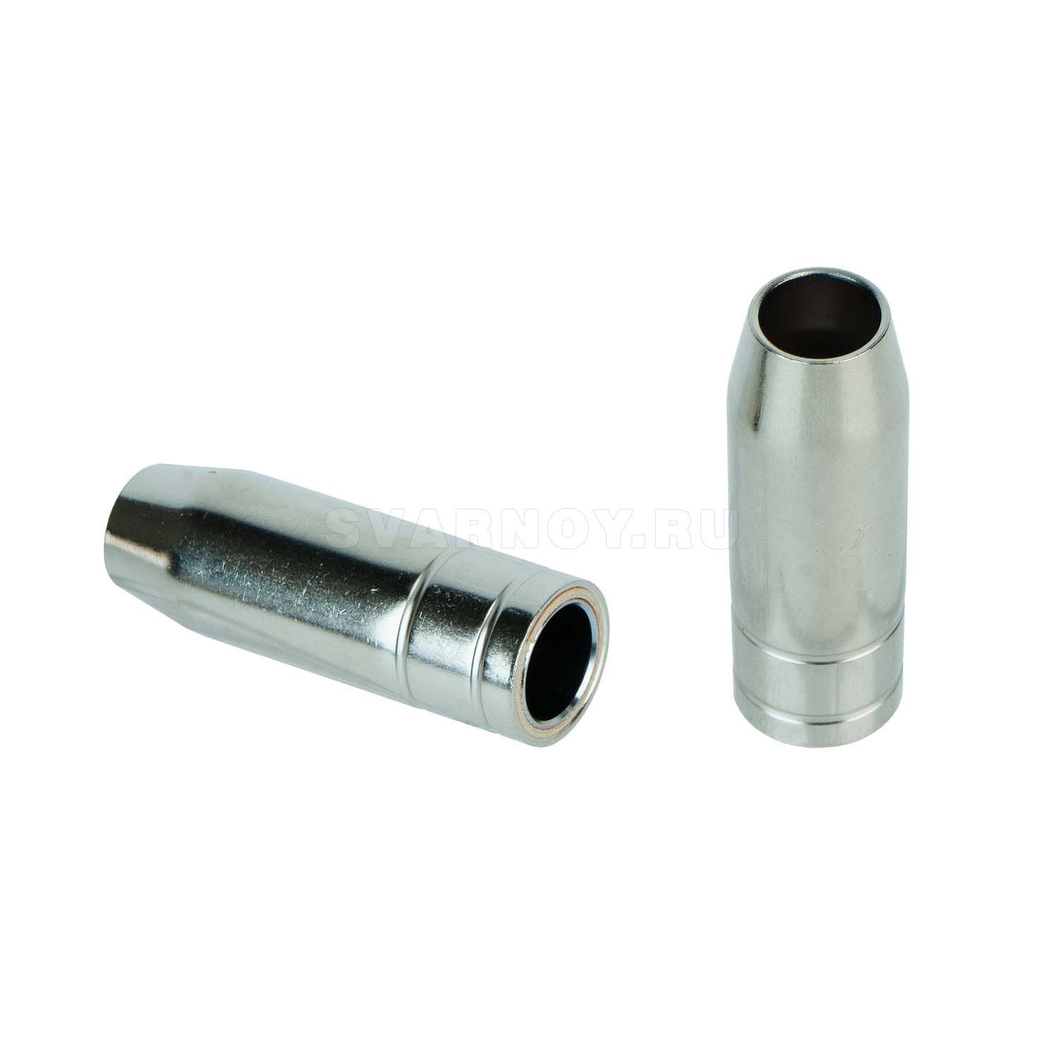 Сопло Uniarc UC1530 коническое медное с хромовым покрытием для MIG (полуавтоматических) горелок Parker SGB 150A / SGF 150A / STH 150AE, Abicor Binzel MB EVO 15 / MB EVO PRO 15. Сопло направляет поток защитного газа в зону сварки. Имеет диаметр выходного отверстия 12,0 мм и длину 53,0 мм. Газовое сопло устанавливается на гусак сварочной горелки без резьбы.
