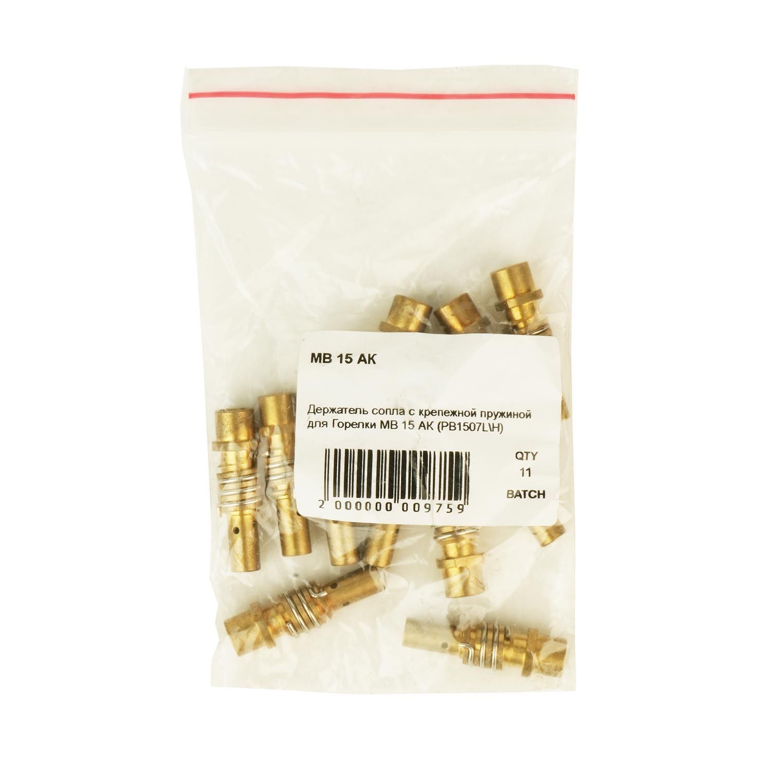 Вставка под наконечник SVR МВ 15 АК для полуавтоматических MIG/MAG горелок. Изготовлена из латуни, имеет длину 42,0 мм, левую резьбу посадки М8x1,0-L и левую резьбу наконечника М6x1,0. Держатель наконечника предназначен для фиксации контактного наконечника и равномерного распределения потока защитного газа.